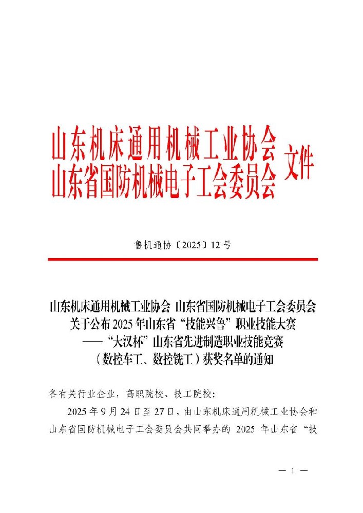 山東省先進(jìn)制造職業(yè)技能競(jìng)賽(數(shù)控車工、數(shù)控銑工)獲獎(jiǎng)通知.p···…